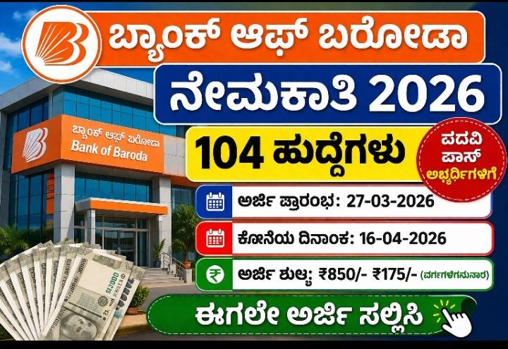 ಬ್ಯಾಂಕ್ ಆಫ್ ಬರೋಡಾ ನೇಮಕಾತಿ 2026: ಪದವೀಧರರಿಗೆ ಸುವರ್ಣಾವಕಾಶ – ಈಗಲೇ ಅರ್ಜಿ ಹಾಕಿ!